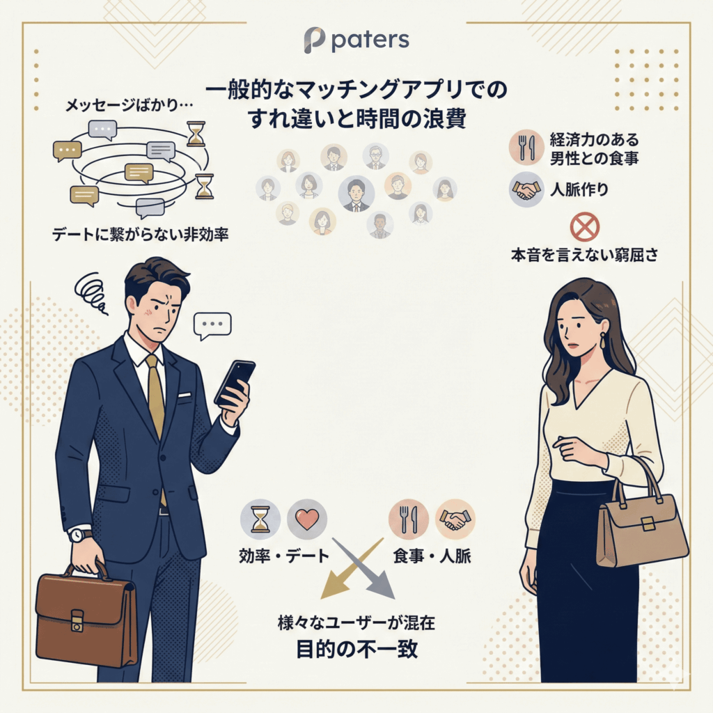 ビジネスの第一線で活躍する男性や、時間を有効活用したい女性にとって、マッチングアプリ特有の「終わりのないメッセージのやり取り」は大きなストレスです。