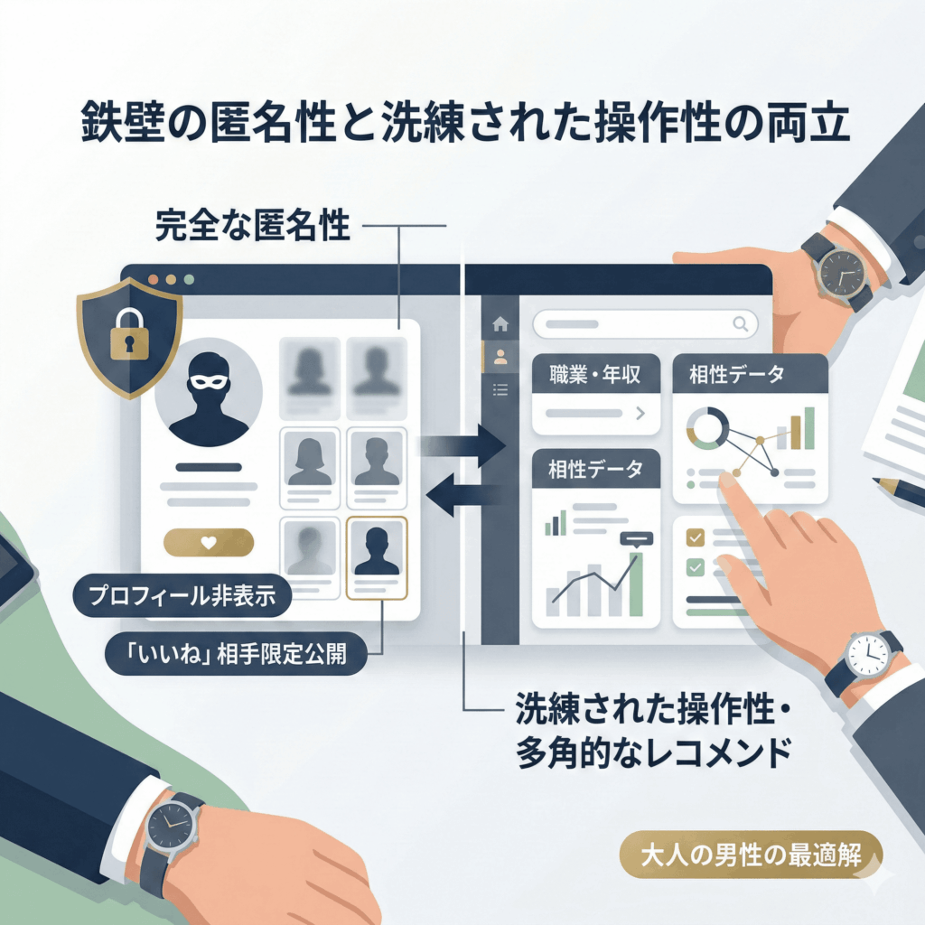 アプリの操作性(UI)も極めて洗練されており、直感的に条件を絞り込んで相手を探せます。年収や職業だけでなく、会うまでの希望や性格診断など、多角的なデータから相性の良い相手をレコメンドしてくれるため、忙しい合間を縫っての操作も苦になりません。「高い秘匿性」と「使いやすさ」の両立。これこそが、プライベートを何よりも大切にする大人の男性が、他のマッチングアプリではなくpatersを指名し続ける、隠れた、しかし決定的な要因となっています。